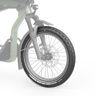 Beste Pannensicherheit, Laufruhe und höchster Fahrkomfort – die Ca Go CS sind mit den langlebigen Schwalbe "PickUp" 65x406 Reifen ausgerüstet, damit du auch mit voller Ladung ganz bequem unterwegs sein kannst. Auf dem Ca Go CS90 Allroad findest du den Schwalbe Smart Sam Cargo 60x406, der dir besten Grip auch ab der Straße bietet.