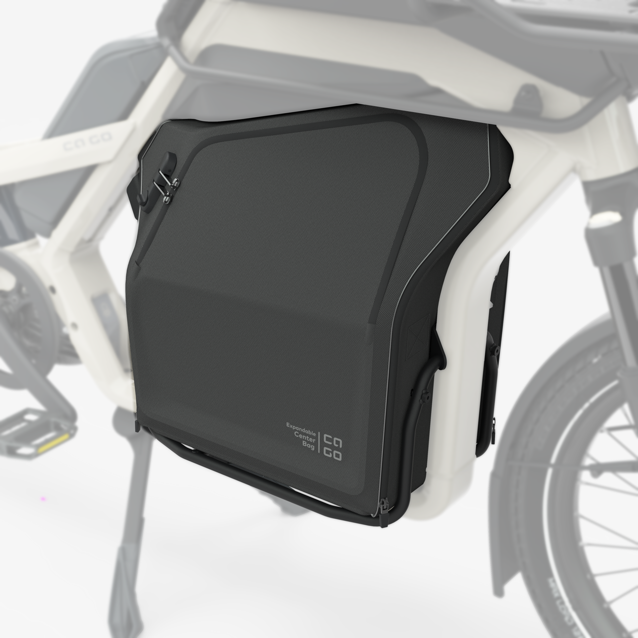 Macht sich für deine Ladung größer: Die passgenaue Tasche für das Center Rack des CS hält Wetter und neugierige Blicke fern und lässt sich bei Bedarf von 25 auf 50 Liter Volumen vergrößern.