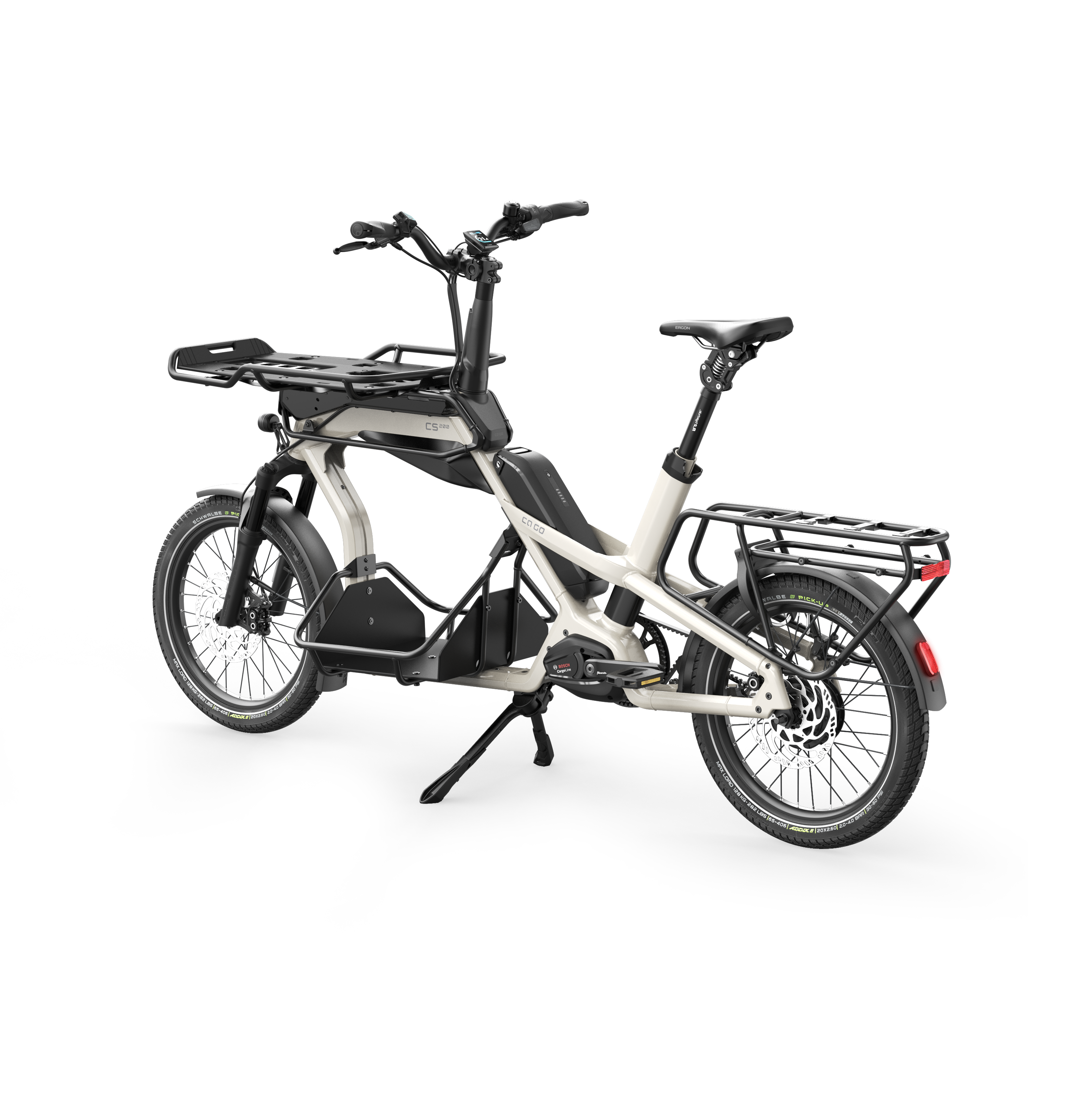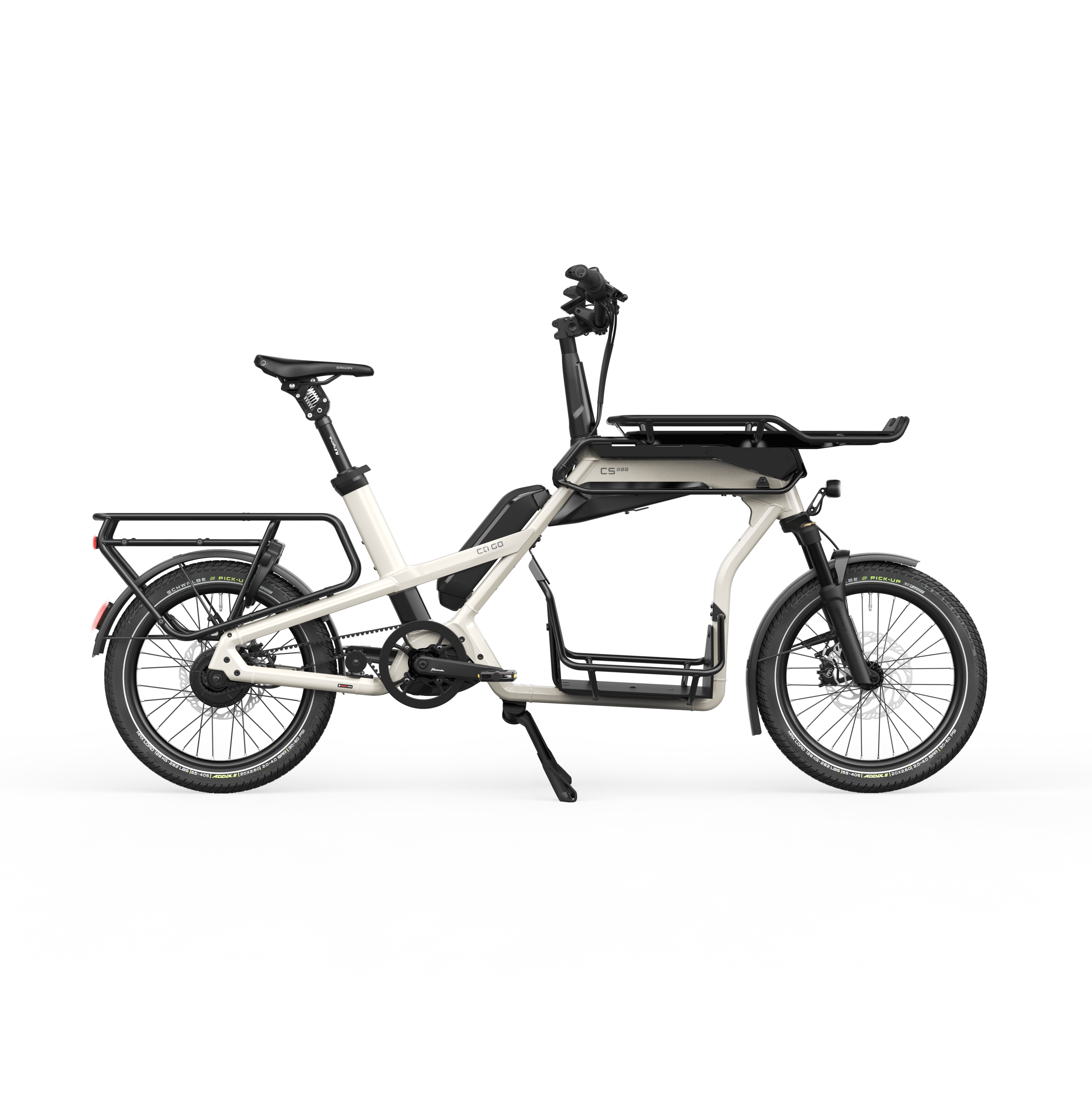 De CS200 is uitgerust met alles wat liefhebbers van compacte e-cargobikes zich kunnen wensen: Krachtige motor, grote Triple Load Space met drie fietsendragers, plus de onderhoudsvrije, eenvoudig te bedienen Enviolo Versnellingsnaaf.